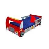 KidKraft Firefighter Bedroom Set. Toddler - sized furnishings for your little hero! Every little kid dreams about being a hero... what better place to do the dreaming than a room decked out with super-cool Firefighter-themed furniture! Fire Truck Toddler Bed: Fits all standard-sized crib mattresses for a fun and easy transition from the crib to a bed. The low-to-the-ground design and ladder guard rails keep your junior fire marshall from falling out of the truck at night. Great for kids that are too big for the crib and too small for a regular-sized bed! Made with fun Fire Truck silk-screen details and a special storage compartment in the front for toys, clothes or games. Stoke your child's creative fire! Order Now! AVAILABLE SEPARATELY: KidKraft Fire House Bookcase KidKraft Hydrant Toddler Table - word search in our Store for 'KidKraft'. KidKraft Fire Truck Toddler Cot.Mattress and bedding sold separately.
